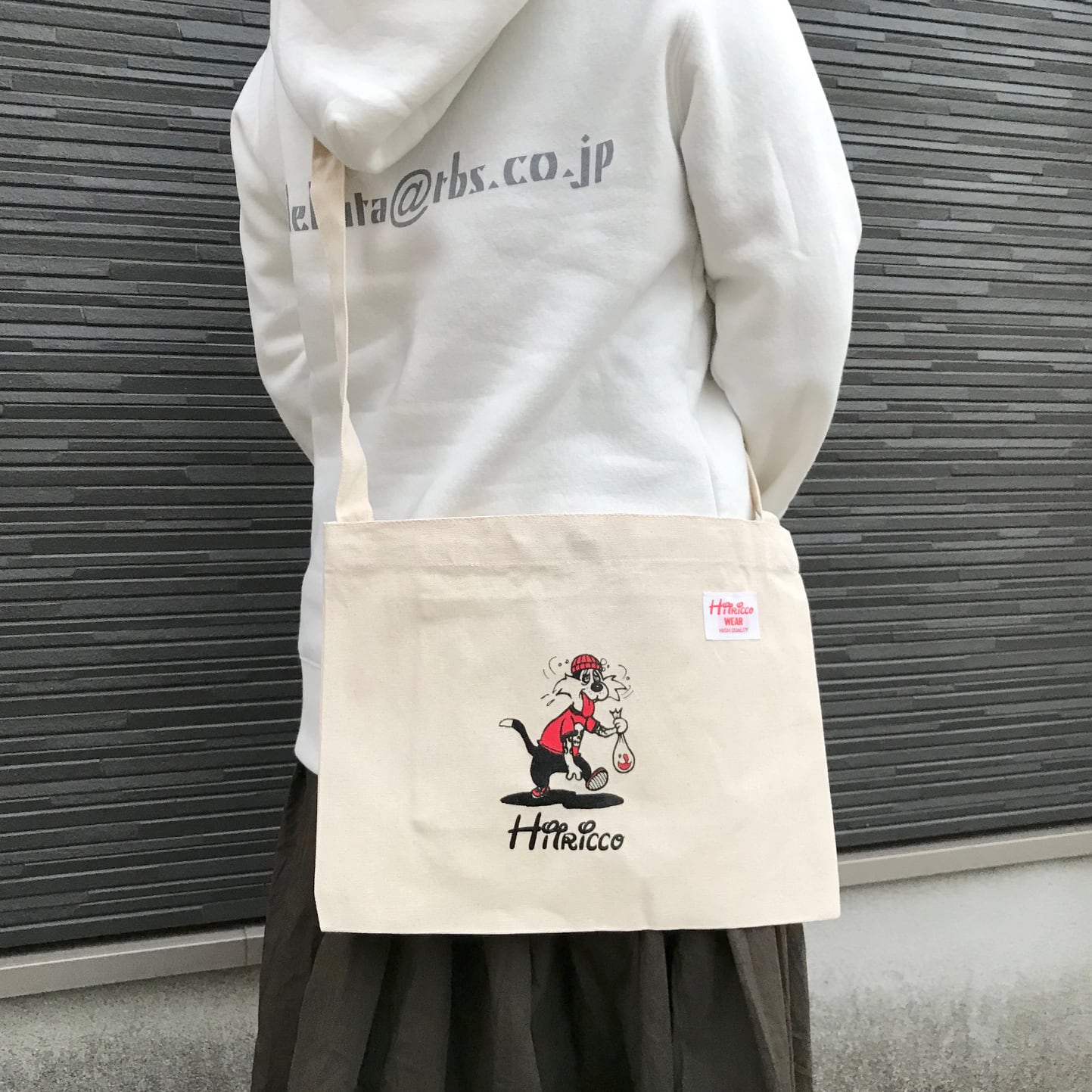 何かを吸ってクラクラしているキャラクターのキャンバスサコッシュ。